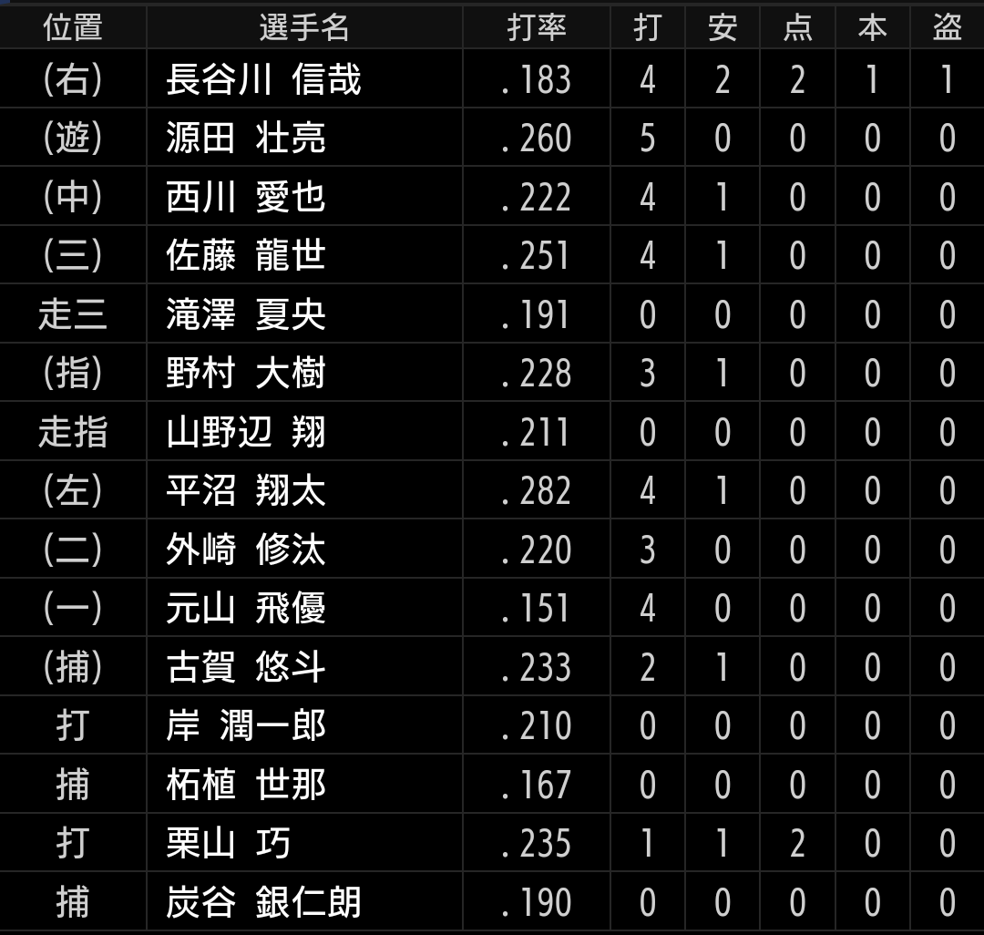 出力は物足りませんが、変化球を低めに集めて空振りが取れたのは良かったです。【野手】