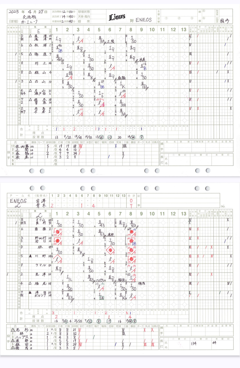 ライオンズ3軍はカーミニークで、ENEOSとの対戦です。