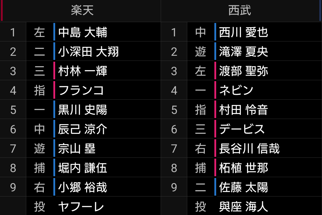 後半戦は楽天戦からスタートです。