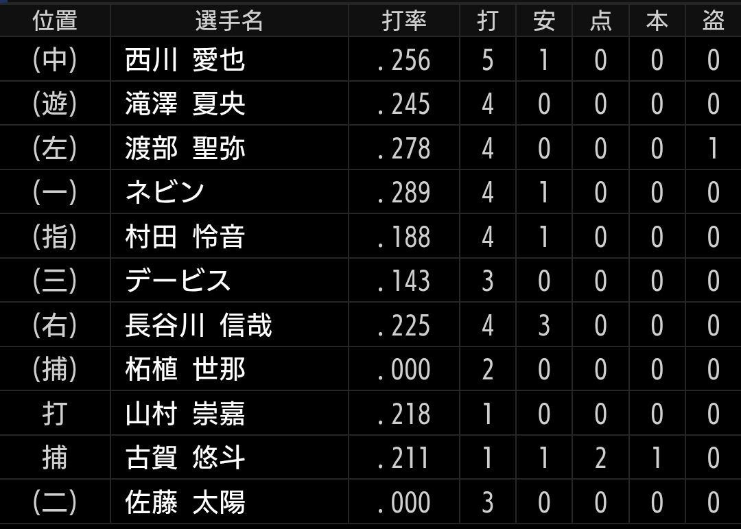 山村選手は、犠牲フライを狙って打てる打撃センスはあるのですが、当てるだけの打撃になってしまいました。
