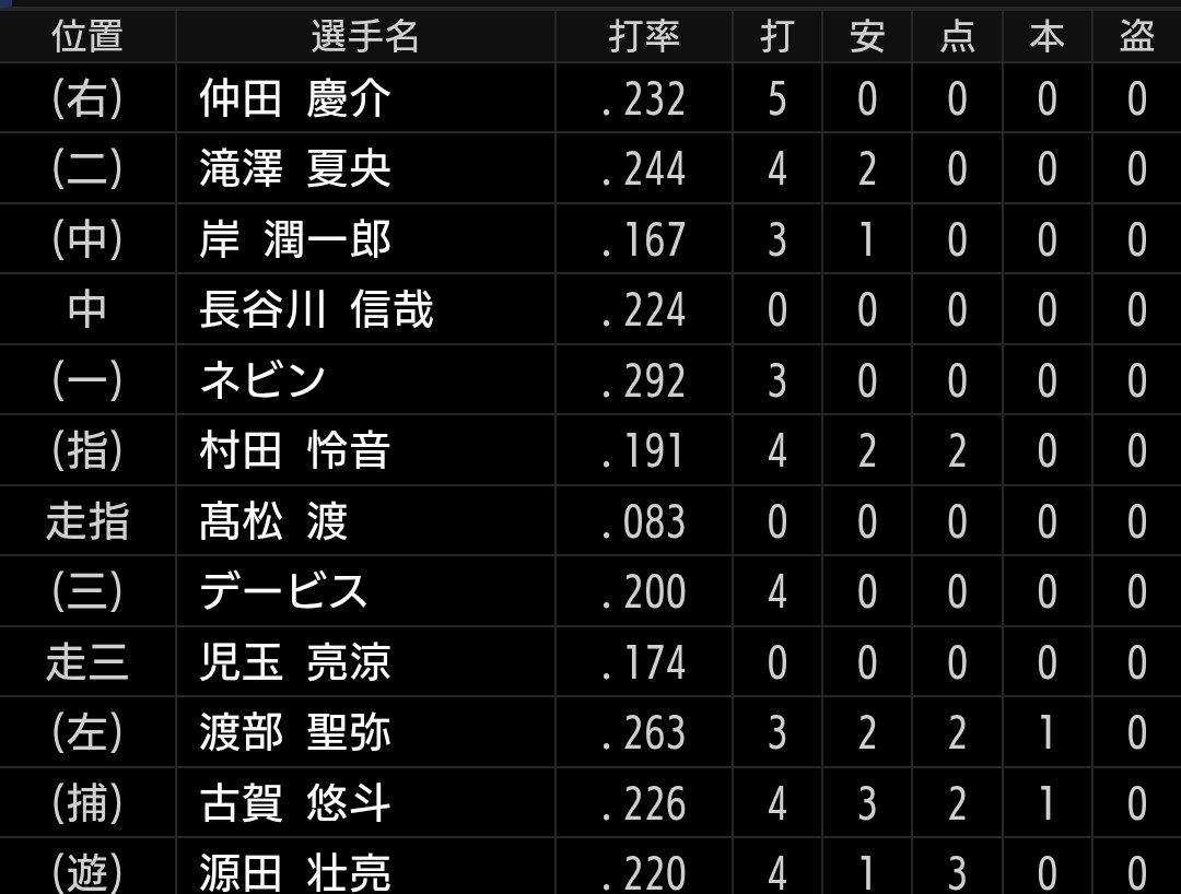 今季は、西川、長谷川、渡部聖選手と、課題の外野が一気に埋まった感もありますが、怪我もありますし、まだまフルシーズン戦える体力はありません。