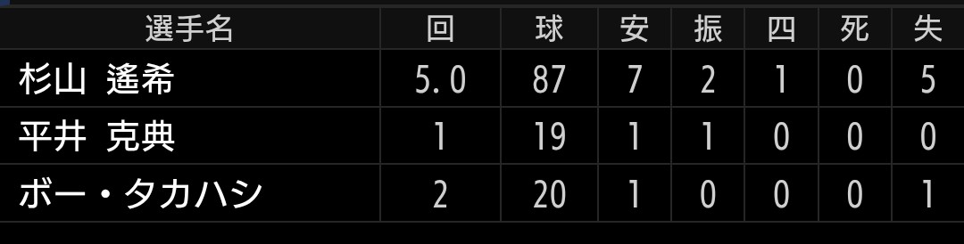 杉山投手が止まらなくなったため、ノーアウト1、3塁からの火消し登板となりました。スライダーが浮き気味でしたが、フォークで三振を奪うなど無失点で切り抜けました。