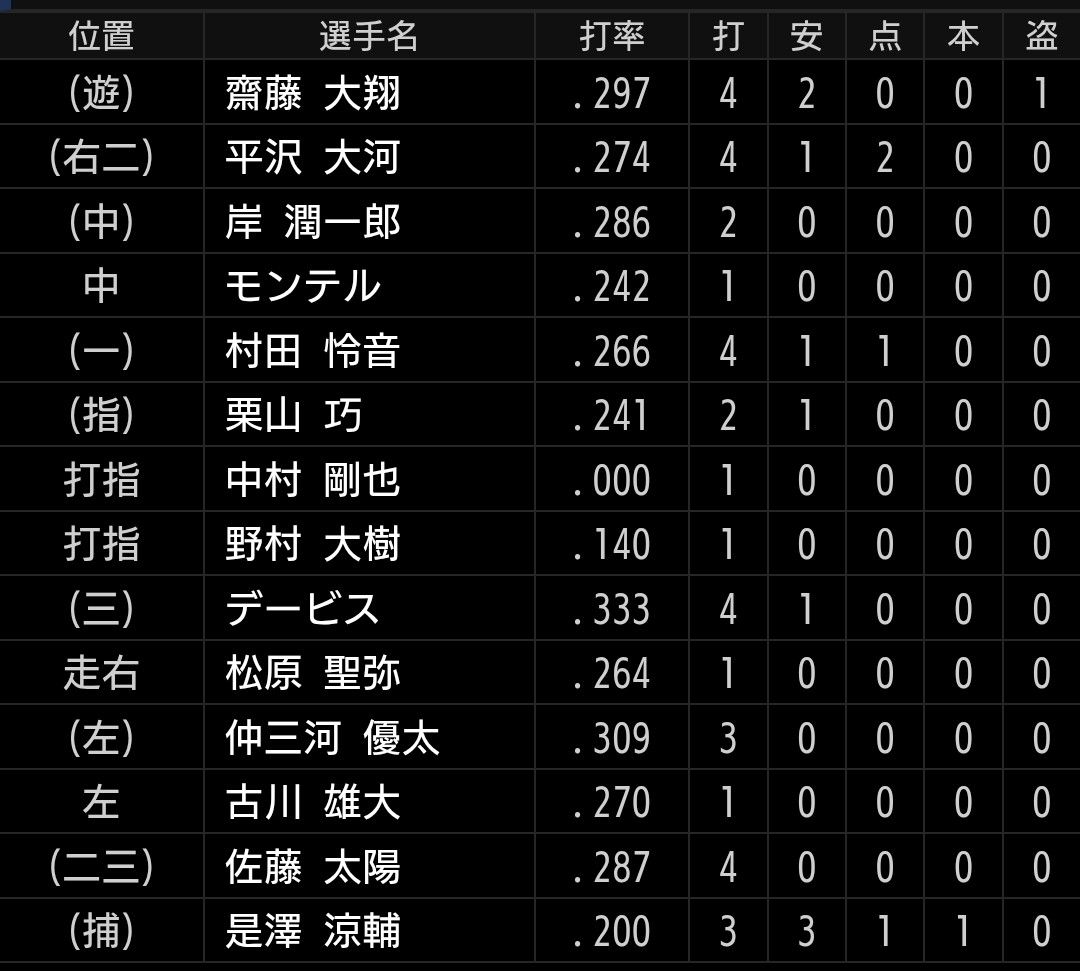 成田投手が先発です。