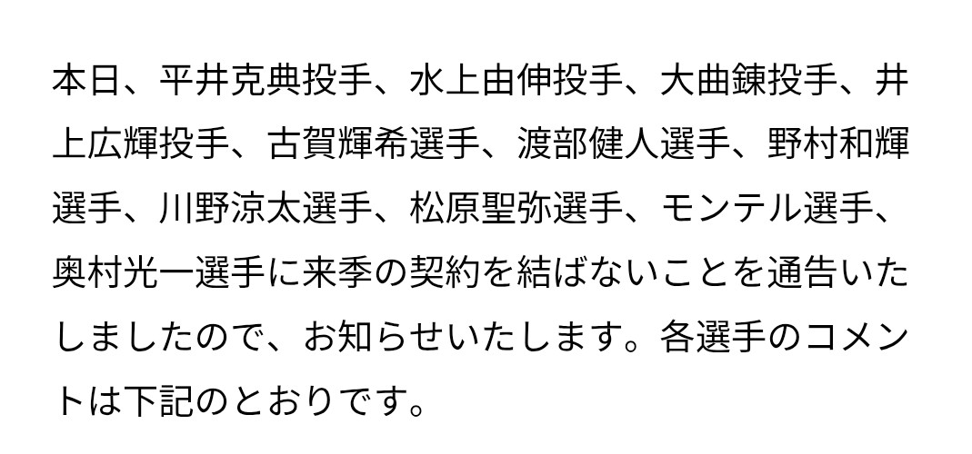 ここが形になれば、来季も4番であろうネビン選手の後ろにもう1人神助っ人+長打のある日本人選手で複数点と言う得点力アップの芽も出て来ます。