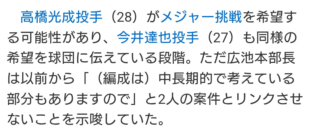 来季はローテ独り立ちをしてもらいたい投手ですので、再現性を高めコンディションも維持できる手段を整えたいです。