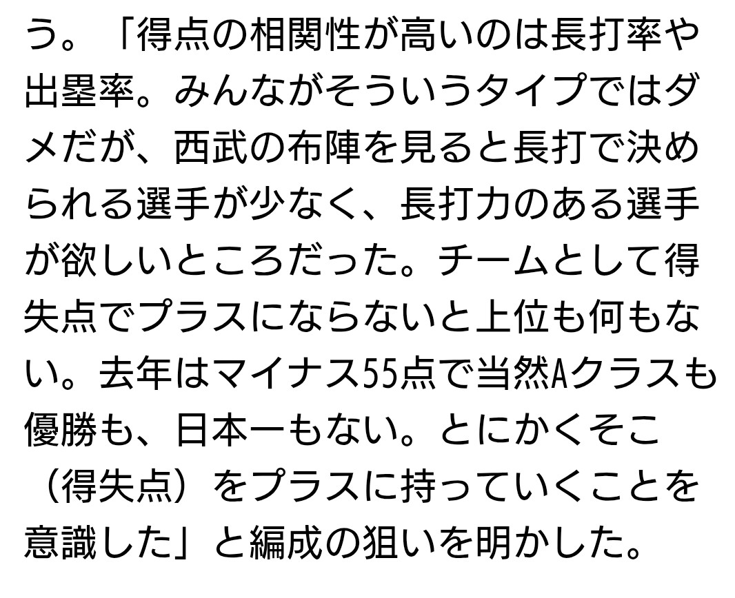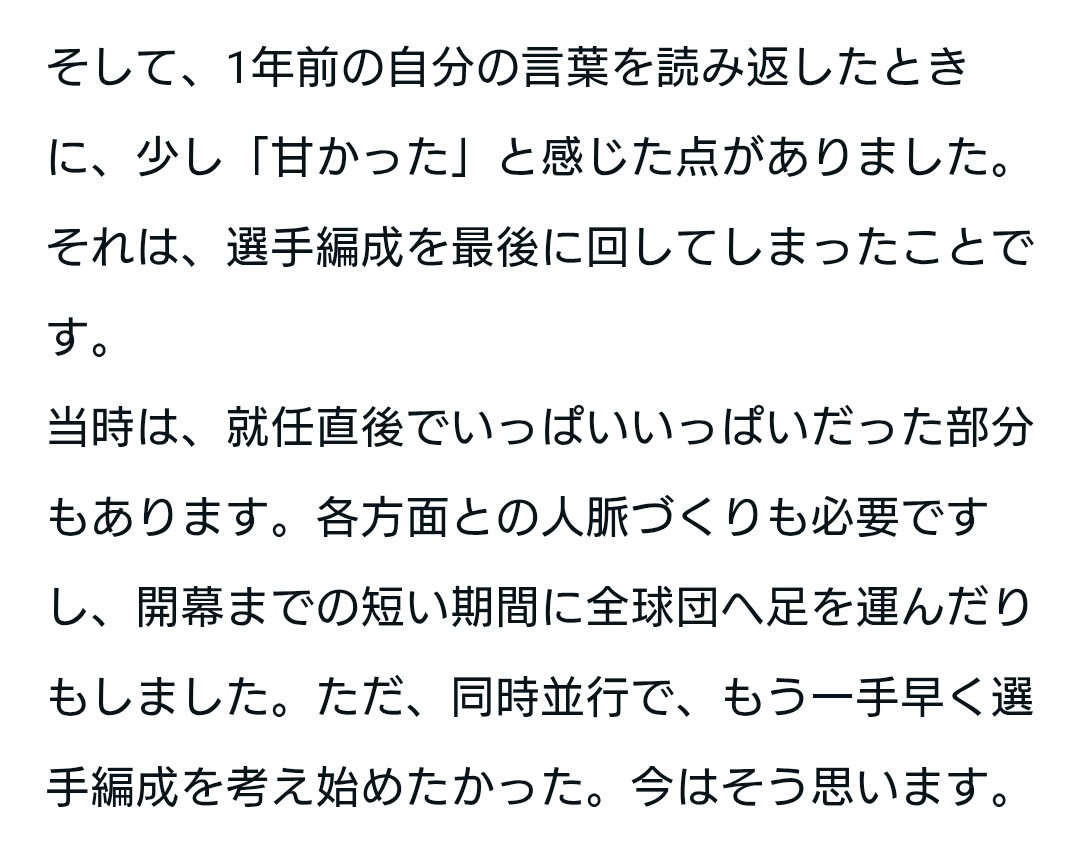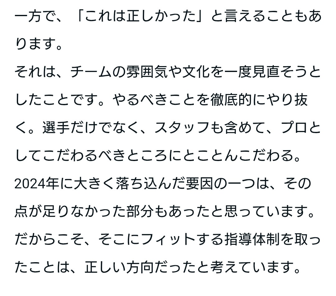 クレバーな選手ですしボール球スイング率の高さなどの課題は理解していますし、コンディション維持の大切さも理解しトレーニングをしていますので、乗り越えてくれると思っています。