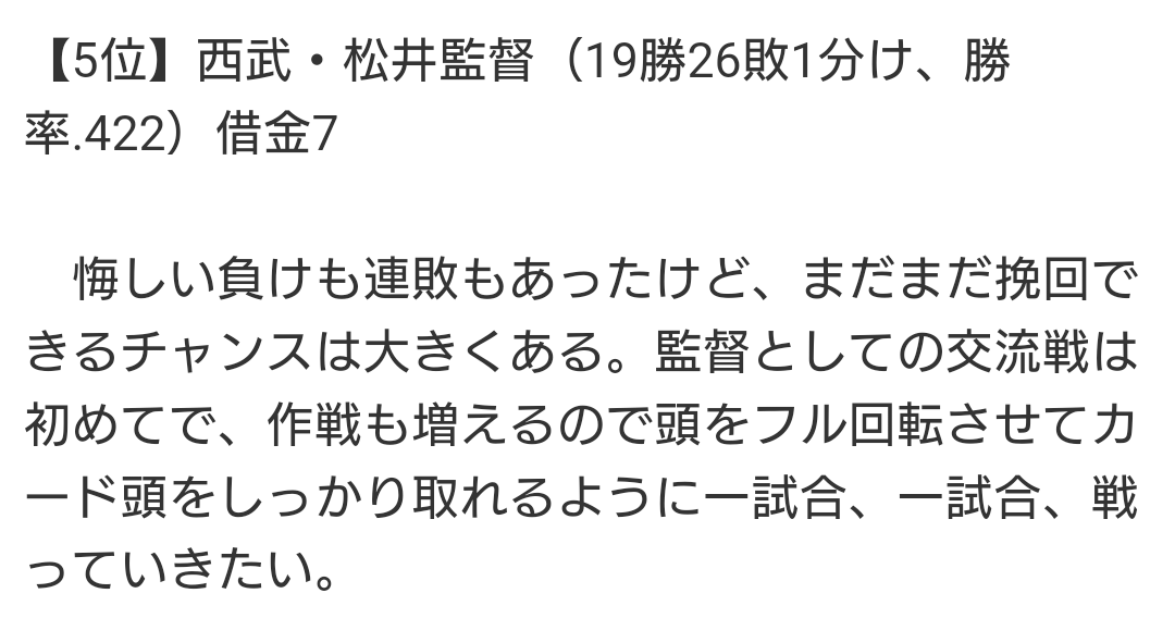 ただ、松井監督はここからの逆襲を誓いました。
