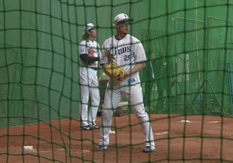 平井投手は、松坂大輔臨時コーチからのアドバイスもあり昨年までの3塁側から1塁側のプレートを踏んでの投球をお試し中です。