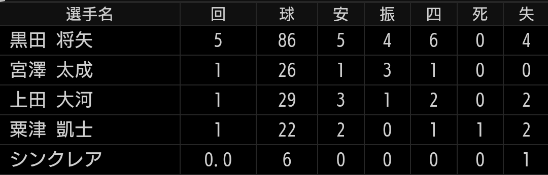 スライダーが甘く入り2失点と、勝ち越しをされてしまいました。シンクレア