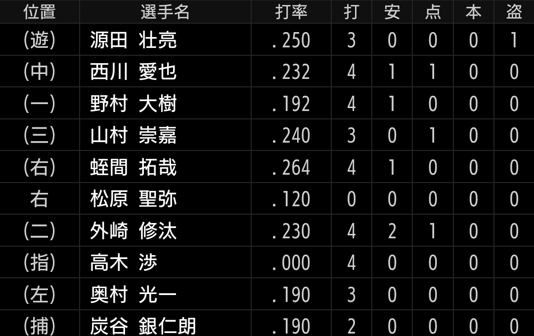 以前、中島裕之選手も狙って犠牲フライが打てると話していましたが、山村選手もこういう所は打撃センスの高さを感じます。