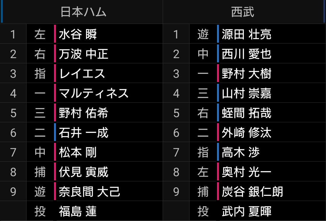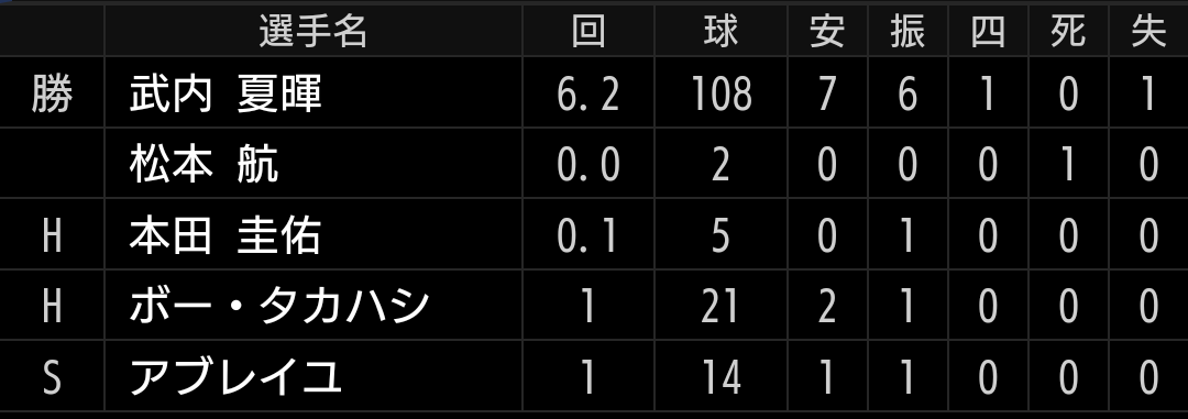 武内投手の好投もあり、ライオンズ後半戦初勝利です。