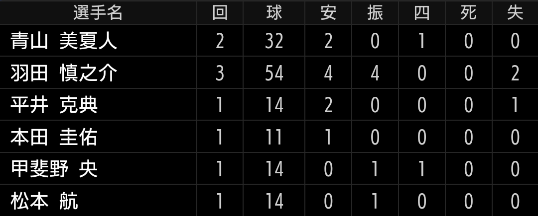 羽田、青山投手共に、まだ1軍で先発として1試合投げさせるのは難しいので、2人で6回までと言う起用も考えたいです。