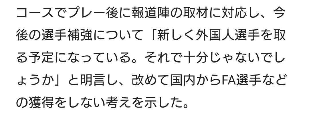 FA参戦しないならせめて、助っ人は期待値の高い選手を獲得して来てもらいたいです。