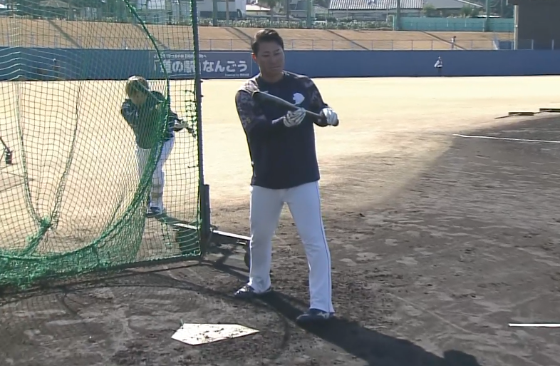柘植選手は打撃フォーム改造です。