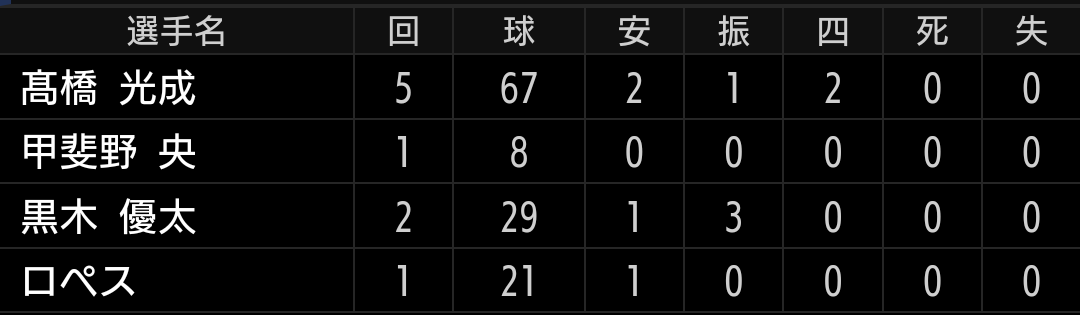 球速は140後半、変化球も空振りがあまり取れずとピリッとしない内容でしたが、5回2安打無失点と結果は良かったです。開幕へ向けて視界良好#髙橋光成 5回1安打無失点