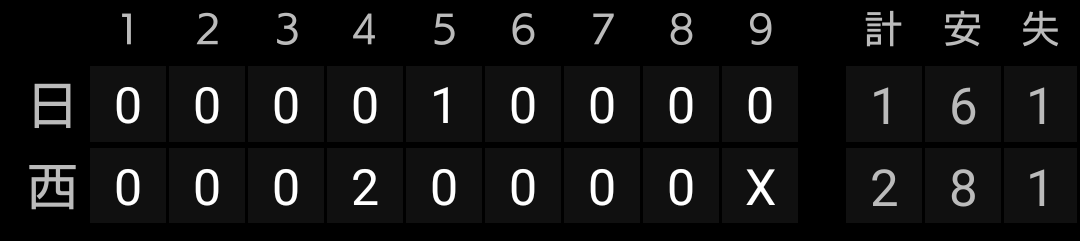 5回4四球8奪三振とロマンの塊っぷりを見せました。四球は多いですが、空振り率15%超えと空振りを取れるのは魅力的です。今日はチェンジアップが決め球として機能しました。