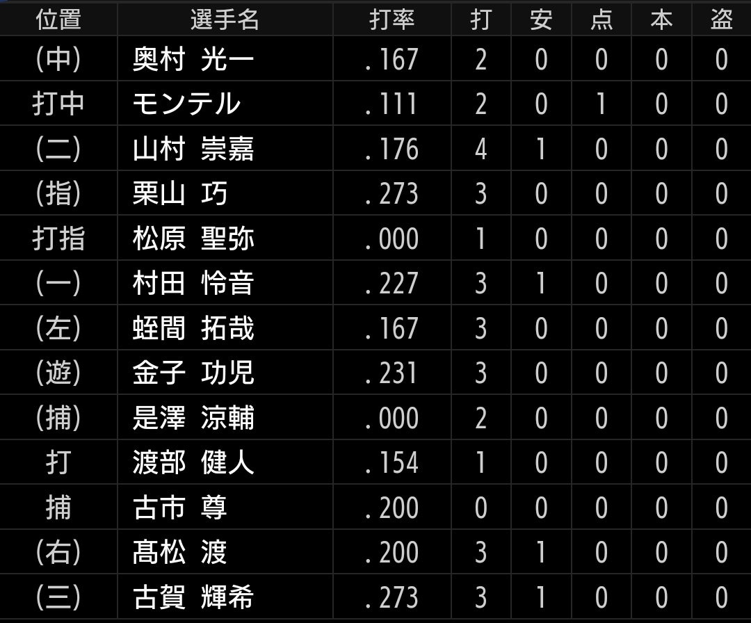 渡部健選手に至っては、代打で出場しオールストレートで3球三振と成長が見られません。。。