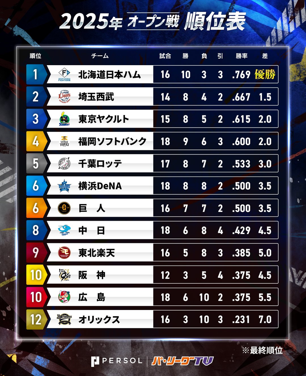 ライオンズは、オープン戦2位の好成績で開幕を迎えます。