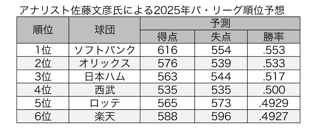 毎年恒例のDELTAによる、パ・リーグ順位予想です。