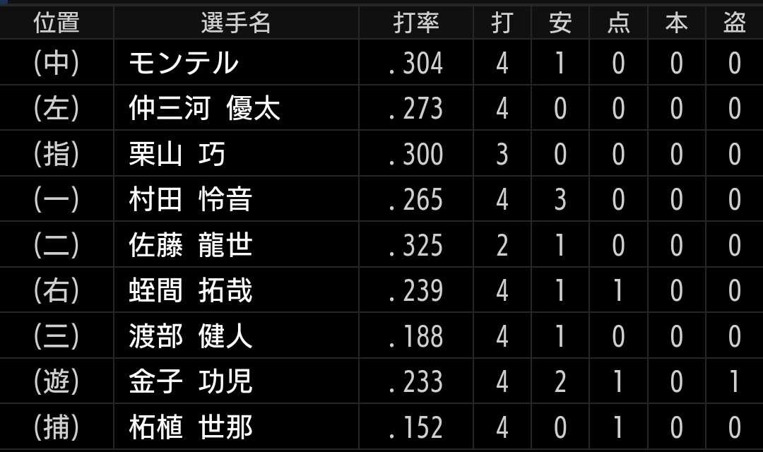 空振りが取れずにだいぶ粘られましたが、無失点に抑えています。【野手】