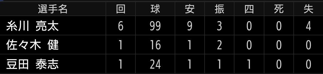やや変化球が高く失点しましたが、無四球なのと最速148キロ出たのは良かったです。スライダー、シンカーと空振りが取れる変化球が2つあるのは武器ですので、ストレートのレベルアップも目指したいです。