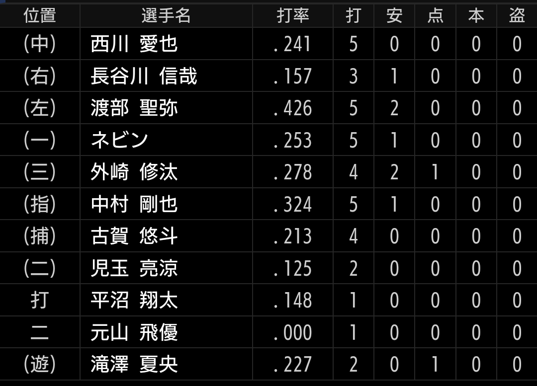 打力を強化する気のない西口采配だと、この2点で逃げ切るしか勝ち筋はありません。