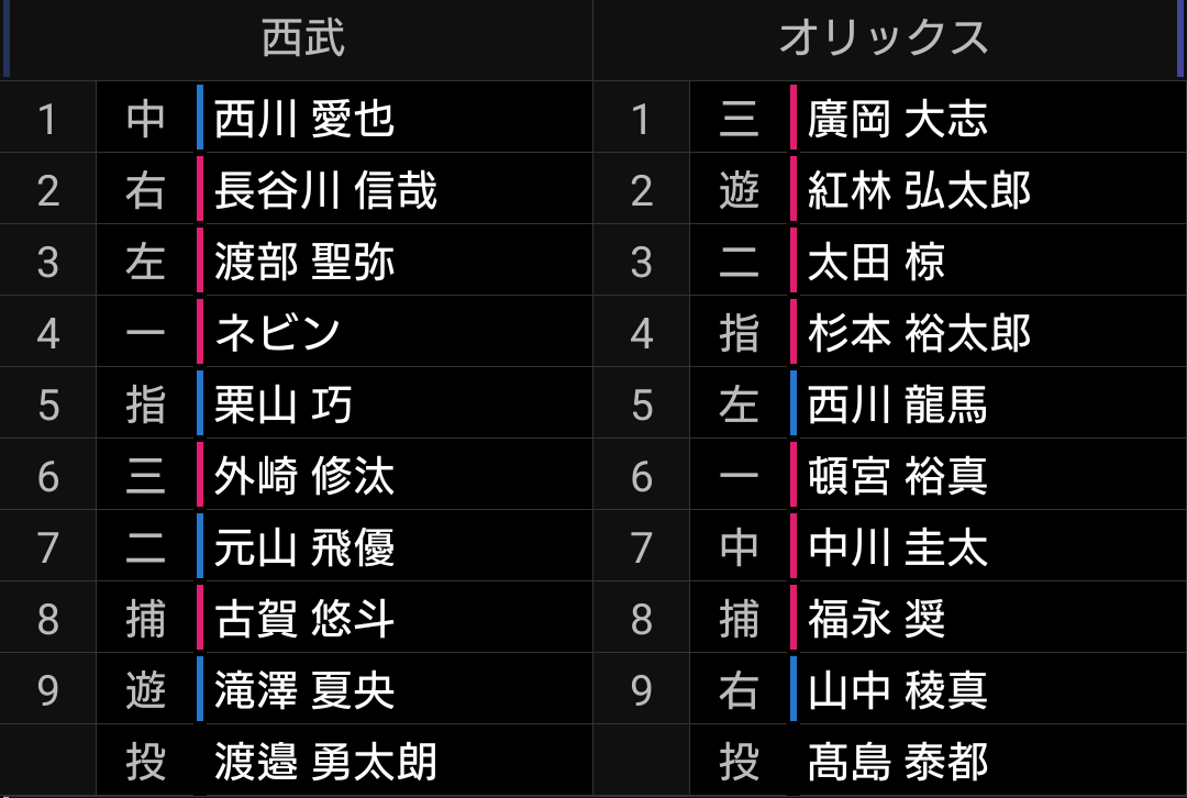 ベルーナドームでのオリックス戦です。