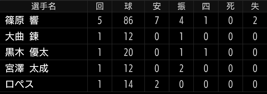 先発挑戦していましたが、今日は中継ぎ登板です。右にはスライダー、左にはスプリットと昨年はほぼストレート、スライダーだけでしたので、スプリットがある程度使えるようになって来たのは良かったです。