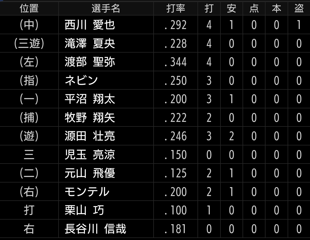 西口監督は、打てないと言いつつもそういうスタメンを組んでいるのは何故でしょう。。。