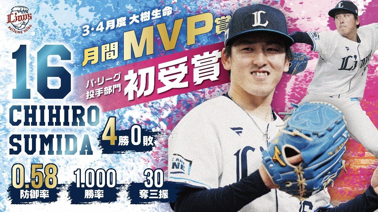 隅田投手が初の月間MVPです。