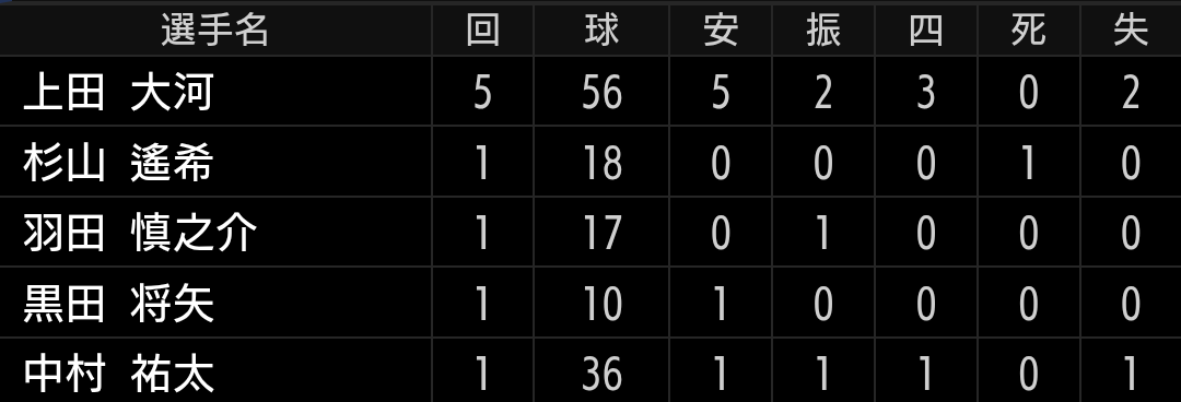 今季は、イマイチな投球が続いています。こちらも出力不足が課題ですので改善したいです。羽田