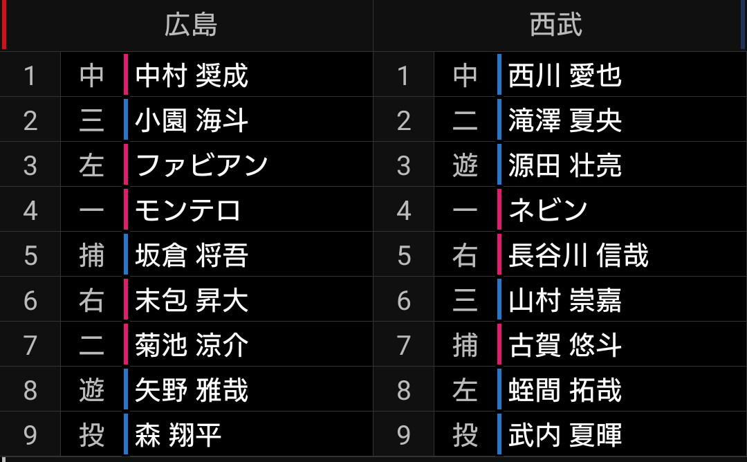 打てるのは西川、ネビン選手ですので、4番にこだわらず西川、滝澤、ネビン選手の並びでも良いとは思います。