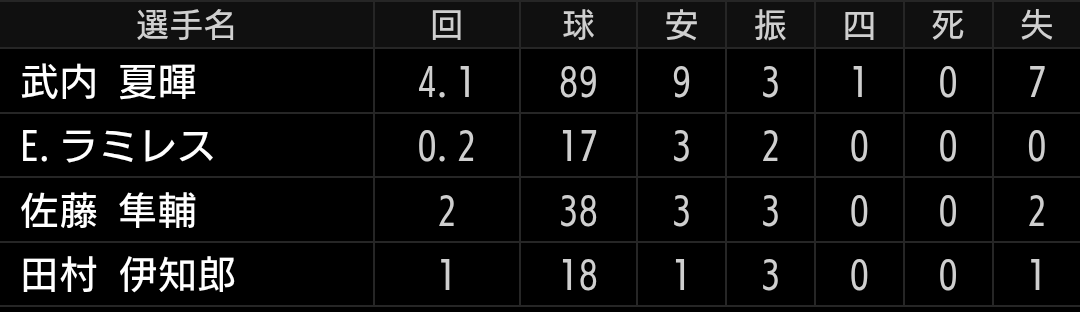 ランナーを置いての登板でしたが、火に油を注ぎ試合を壊しました。ライオンズ打線の力を考えると試合自体は決まってはいましたが、こういう場面で抑えると序列も上がるのですが、、、残念です。