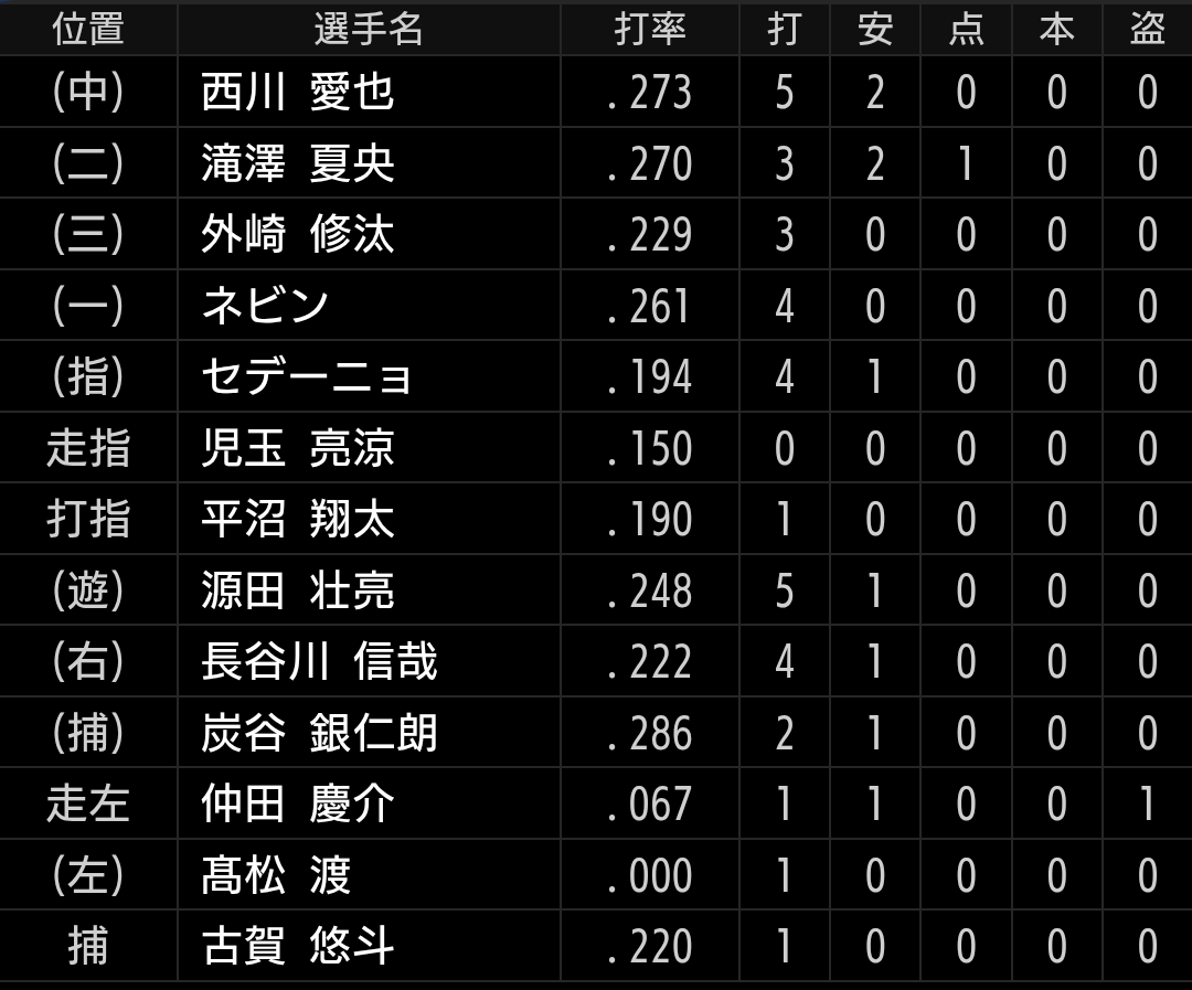 渡部聖弥選手不在で、懸念の3番が埋まりません。