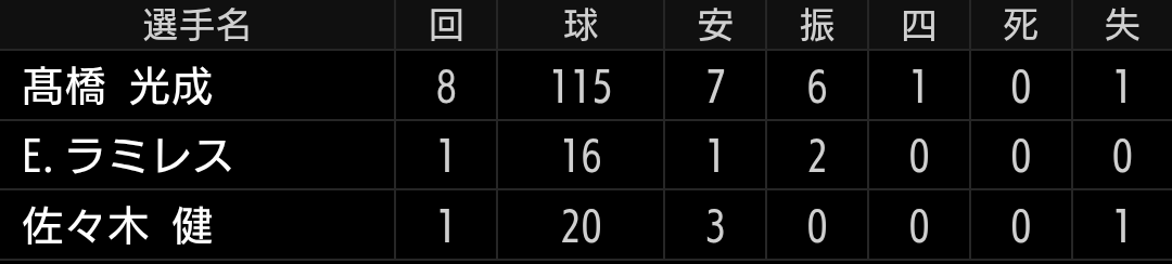 次戦は、7回までの高橋光成投手か、7回以降の高橋光成投手なのか注目です。
