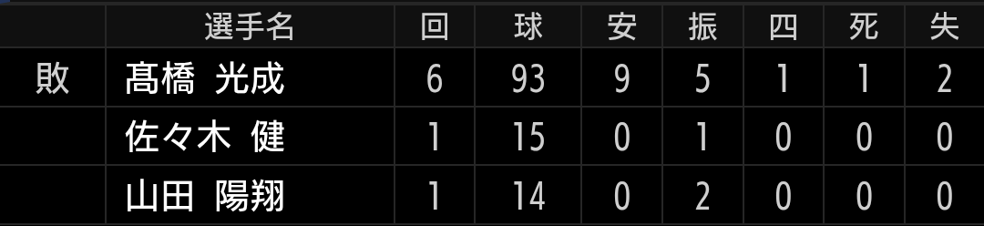 高橋光成はこの程度ではないと言う投球を、次回は見せてもらいたいです。