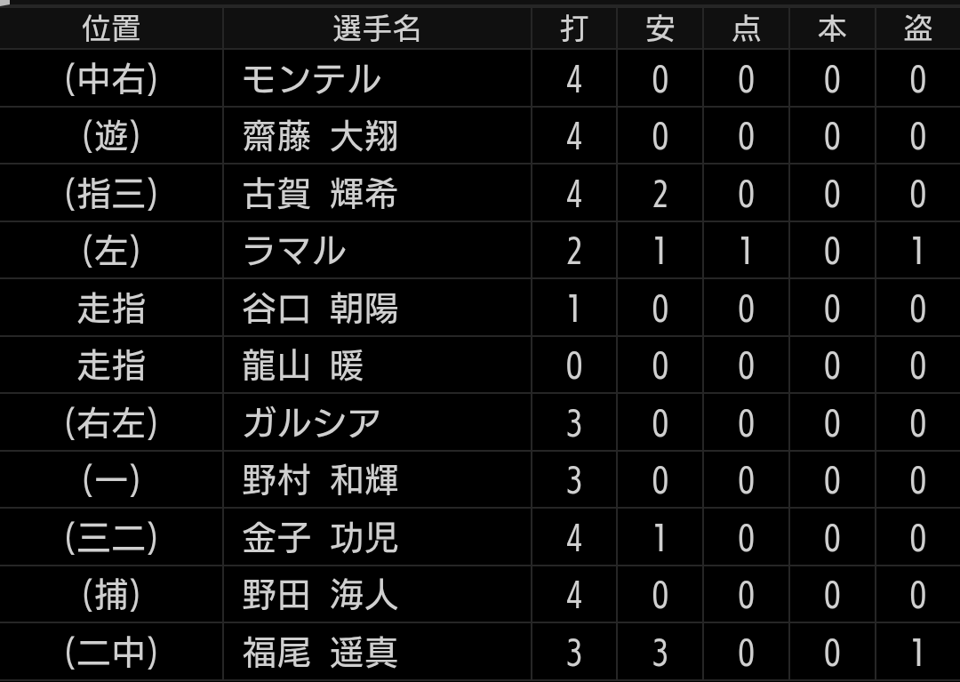 福尾選手は3安打です。