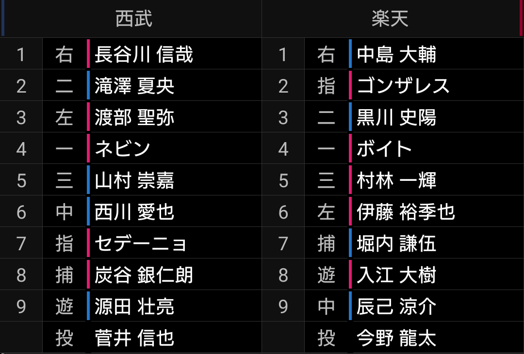 楽天ファンには悪いですが、このクオリティのブルペンデー相手に点が取れないライオンズ打線は重症です。