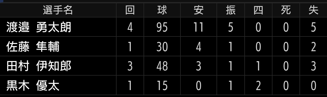 四球で崩れた訳でもなく、空振りもしっかり取れましたが、日ハム打線の振りが強いです。力負けです。