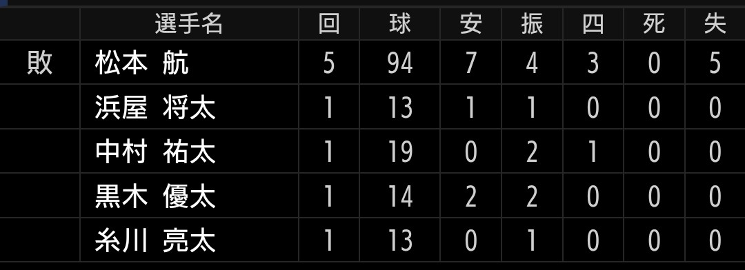ソフトバンク中軸相手の登板でしたが、しっかり無失点に抑えました。今季は球速も上がりましたし、三振も取れるようになっているのを見せられたのは良かったです。