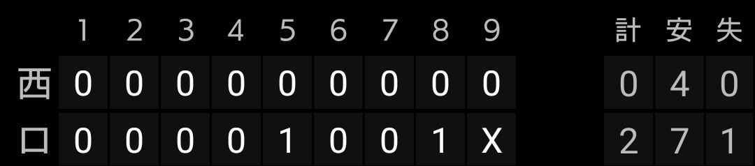 8回には、ネビン選手の前にランナーを出すと、とっておきの代走髙松選手を起用しますが、レフトフライで戻りきれずチャンスを潰しました。