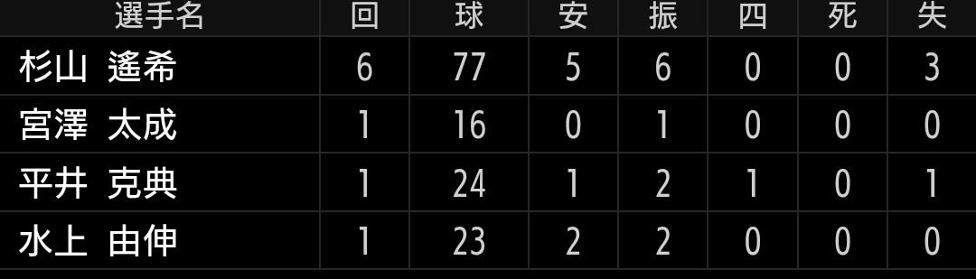 6回6奪三振3失点と、良い所も課題も見えた投球でした。序盤は最速144キロと杉山投手にしては球速も出ていましたし、制球良く低目に集められたのは良かったです。