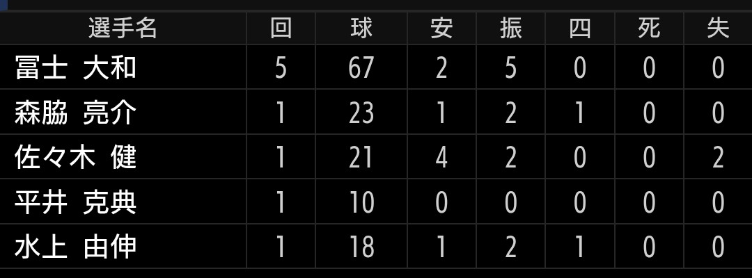 フォークの精度がもう一つでしたが、低目には集まっていましたし、最後はストレートで三振が取れたのは良かったです。佐々木