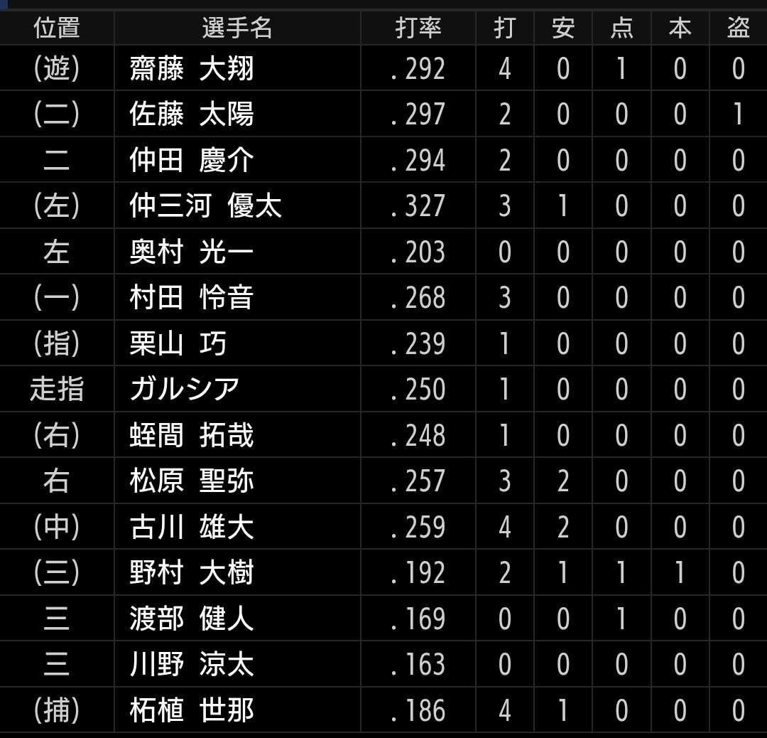 仲三河選手に復帰後初ヒットです。
