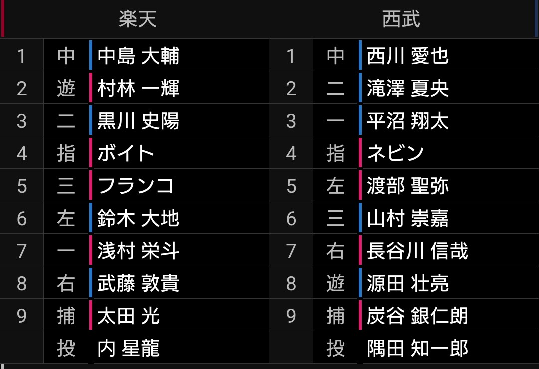 マッチアップ的には、ライオンズ番隅田投手ですしやっておきたかったとも言えますし、昨日投手をかなり費やしましたので休ませられたとも言えます。