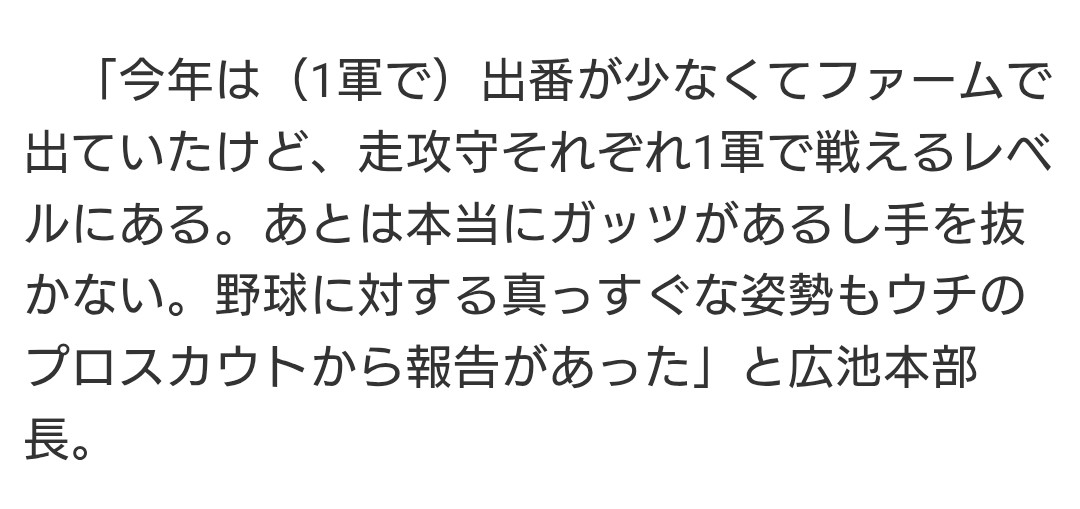 かつての渡辺体制でも、ドラ1蛭間選手、ドラ2古川選手と外野手を1、2位指名し、外野のテコ入れに本腰を入れた事もありましたが、広池体制はそれ以上の本気です。