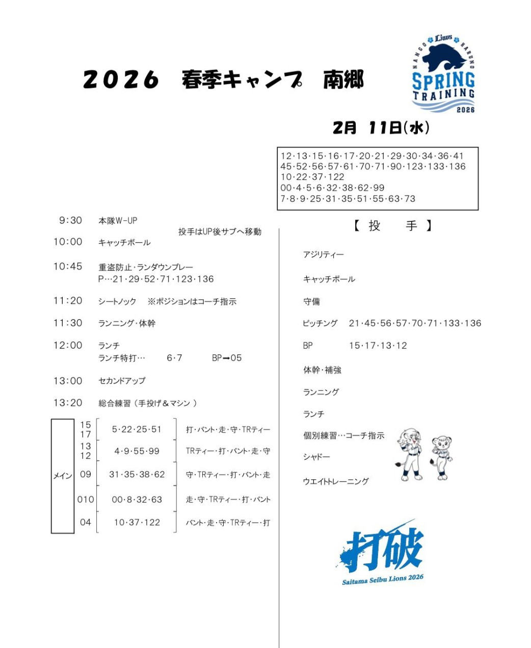ここからはライオンズのための調整となりますが、離脱が長引かないように開幕に合わせて調整したいです。