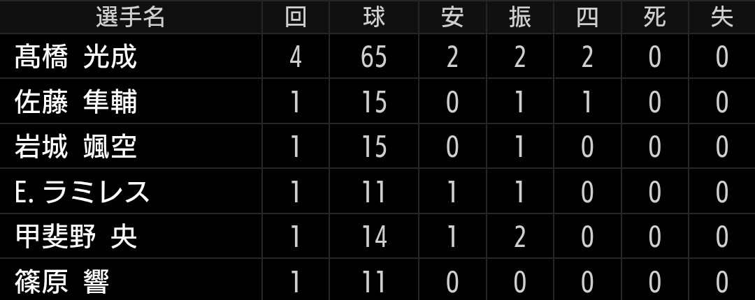 打てない試合でしたが、山田投手が離脱し不安視された中継ぎ投手が順調なのは良かったです。