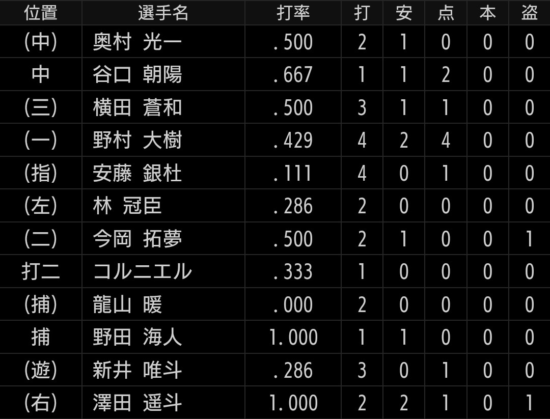 澤田選手は2安打2四球の4出塁です。