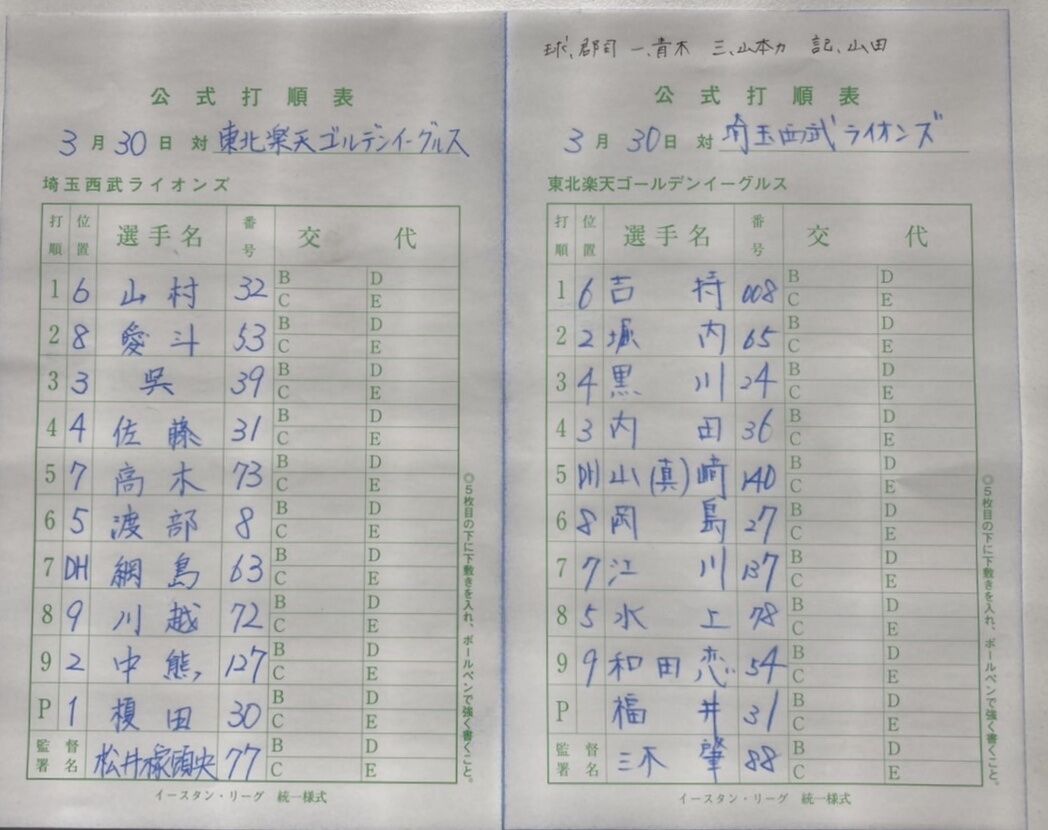 本日のイースタンリーグは、楽天戦です。